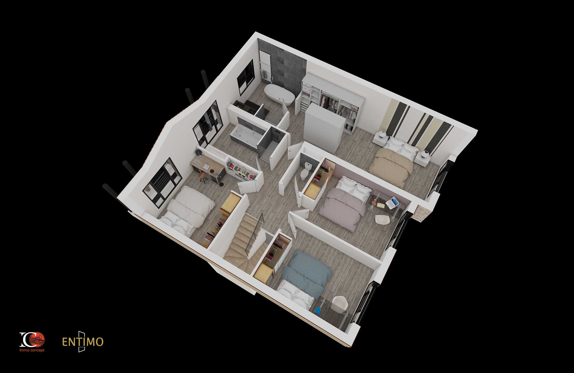 Leurs étages, plus privatifs, sont réservés aux chambres et aux suites parentales avec dressings et salle de bains privatives. Indépentents de l'effervescence familiale du rez-de-chaussée, ils sont dédiés aux temps plus calmes et plus intimes.