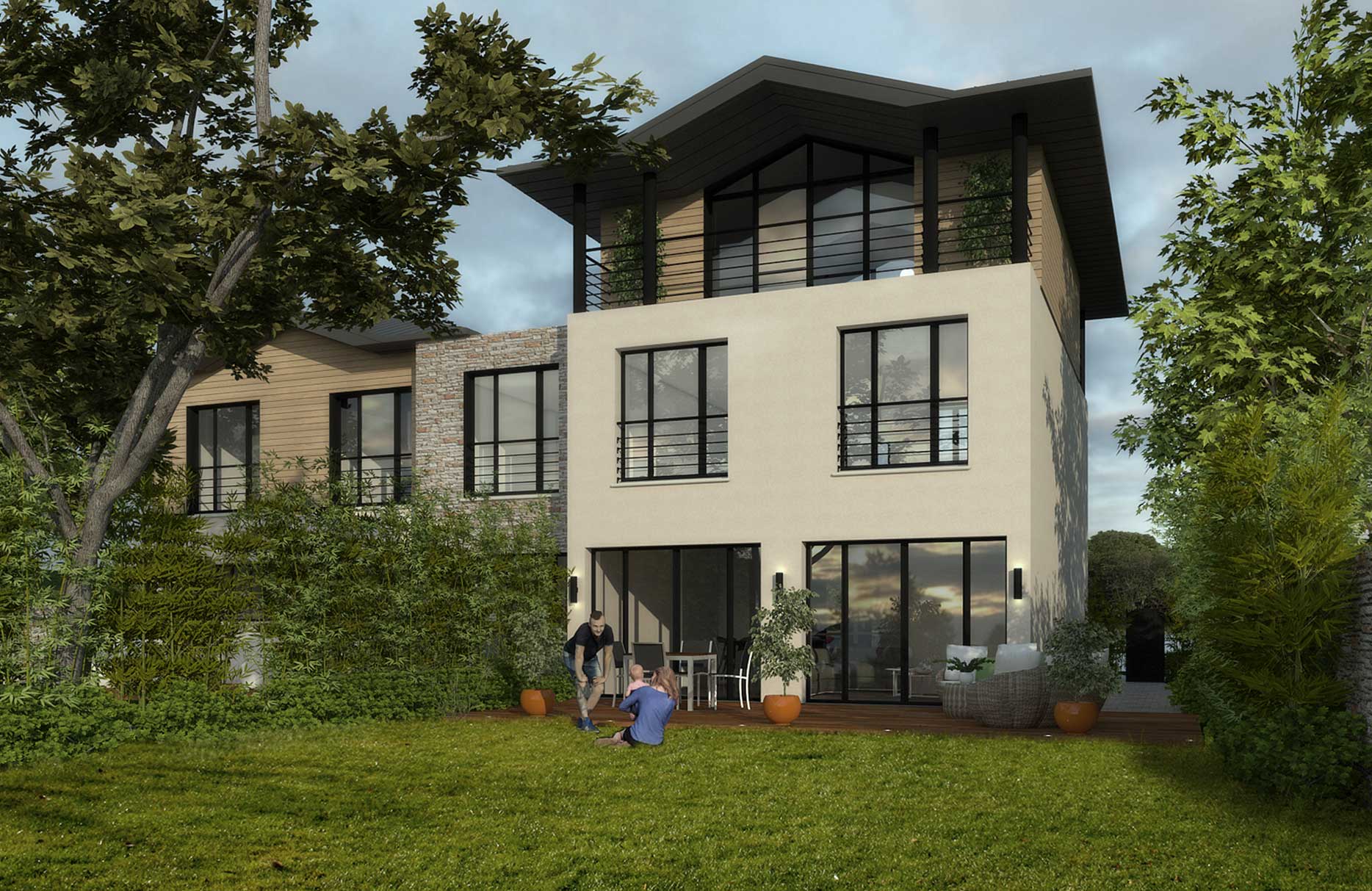 Lignes sobres, grandes ouvertures, enduit traditionnel à la chaux couleur grège, bardage de bois blond, parement façon pierres sèches, toiture en zinc... les villas de Delightful Gardens se fondent parfaitement à leur quartier, leur environnement végétal en y glissant une pointe de modernité.