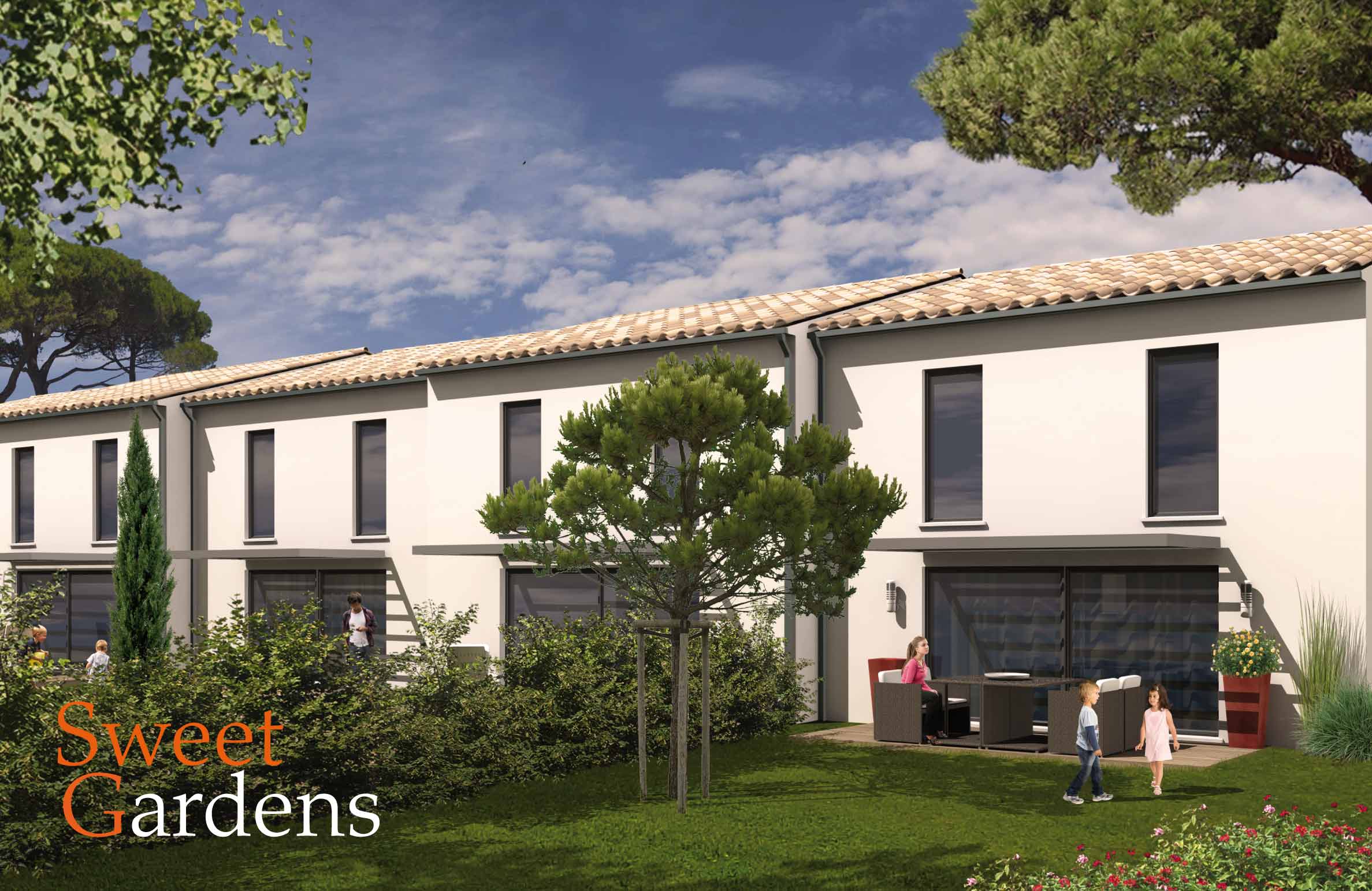 Sweet Gardens est un ensemble résidentiel de cinq maisons de villes. Son architecture combine les références contemporaines et provençales. Elle joue ainsi avec les volumes, les décrochés, les matériaux variés ce qui créé une silhouette d'ensemble animée et donne une échelle humaine à la résidence. Sweet Gardens offre de plus des équipements qui renforcent son confort (garage, deux places de stationnement privatives).