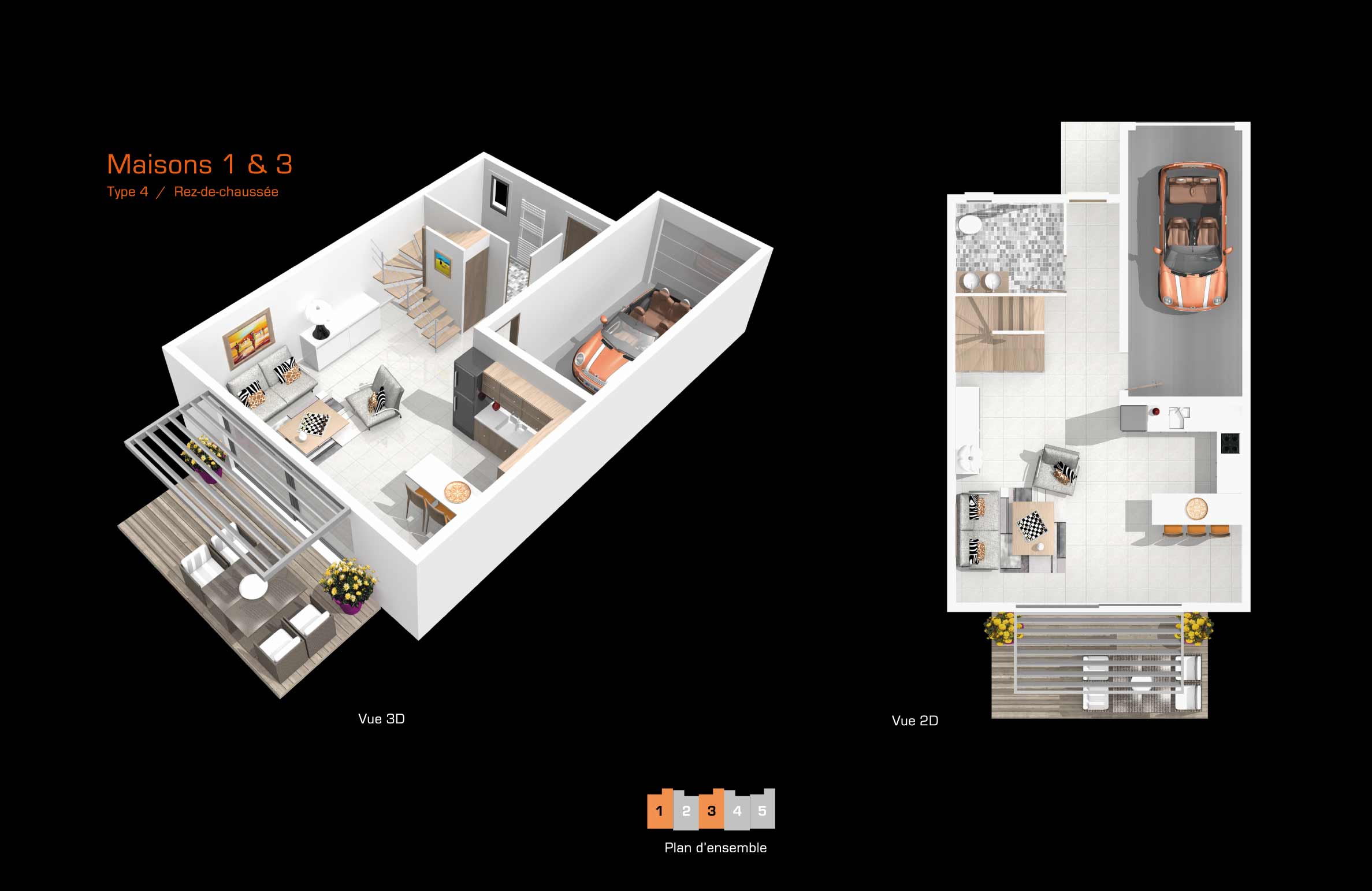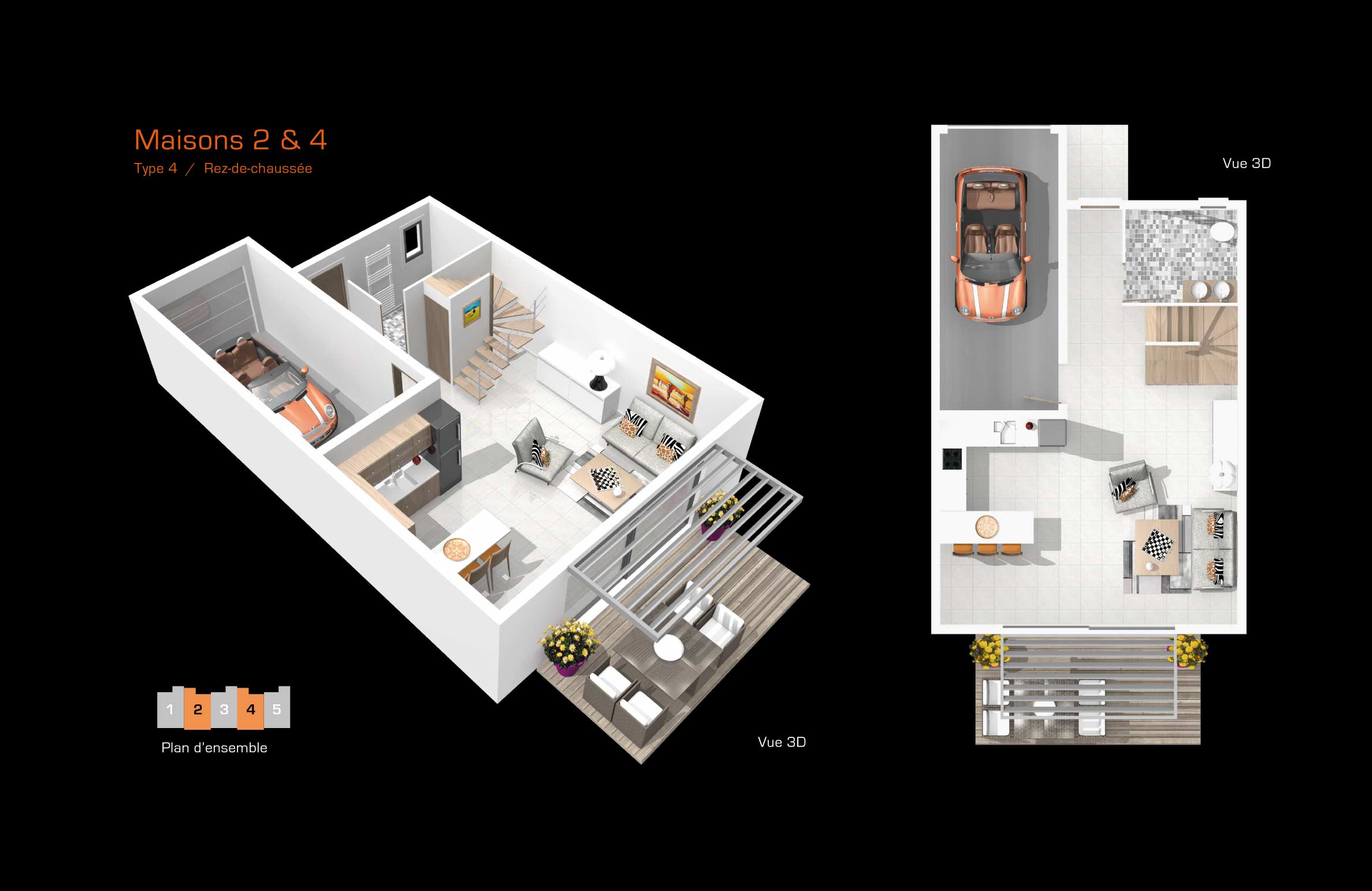| Typologies | Maisons T4 et T5 avec jardin |